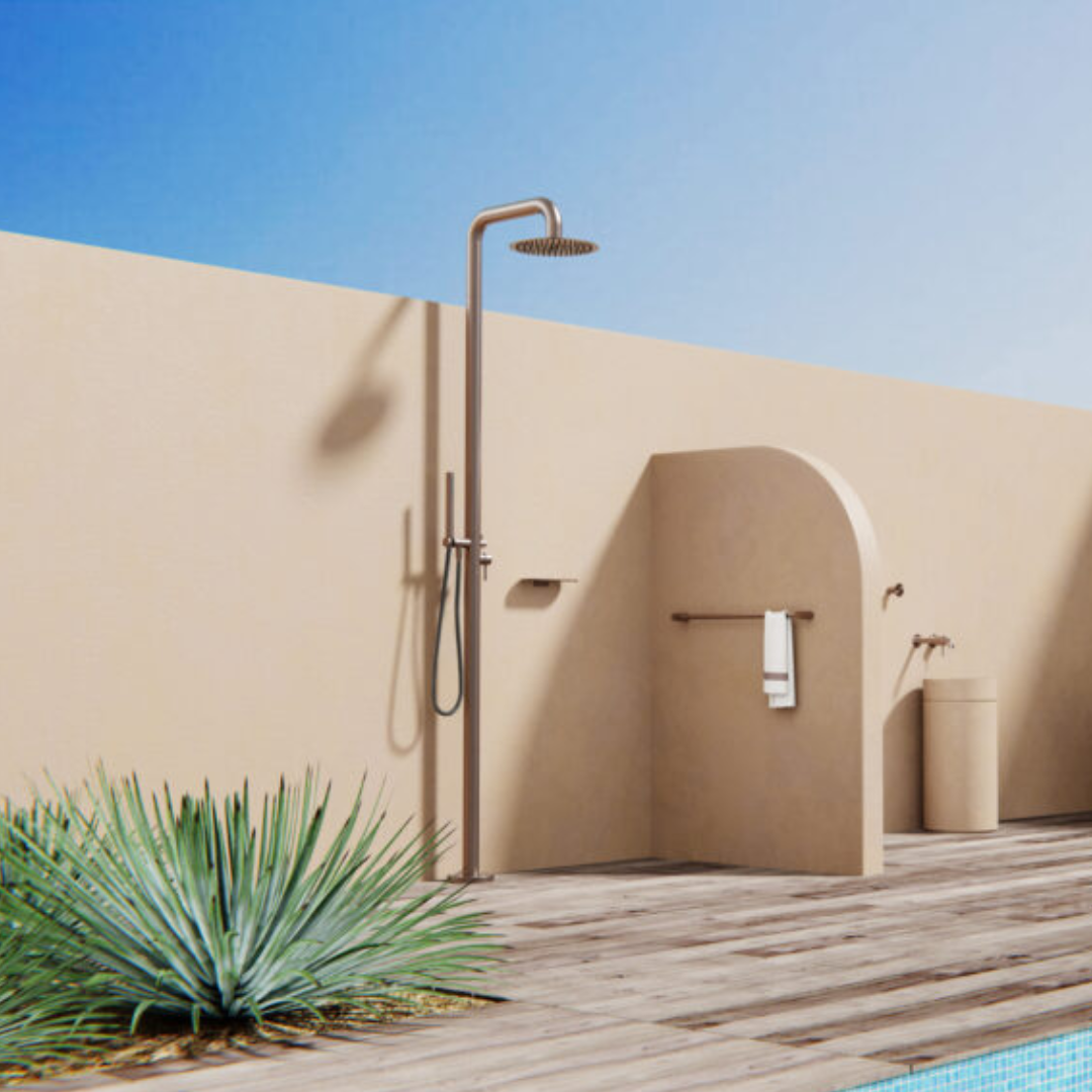 Buitendoucheset Capri – Vrijstaand – Regendouche & Staafhanddouche - Brushed bronze