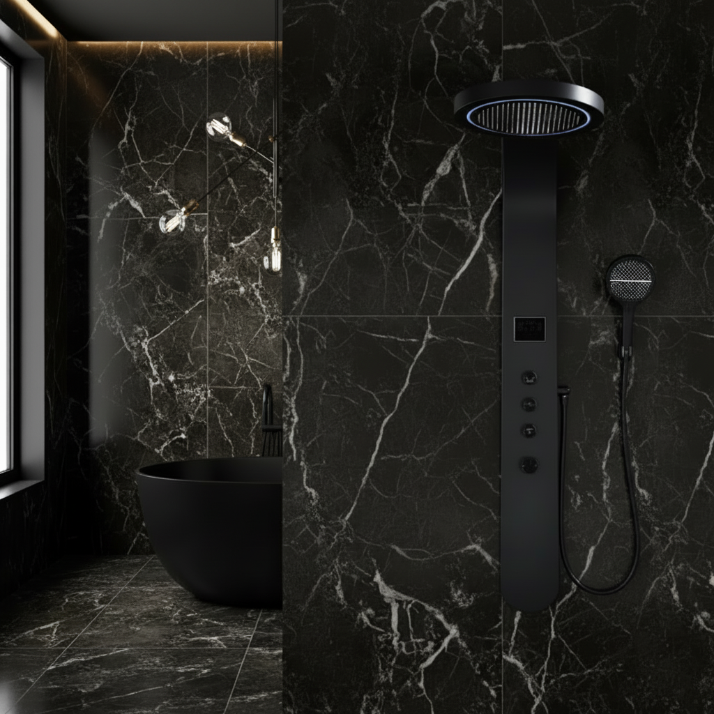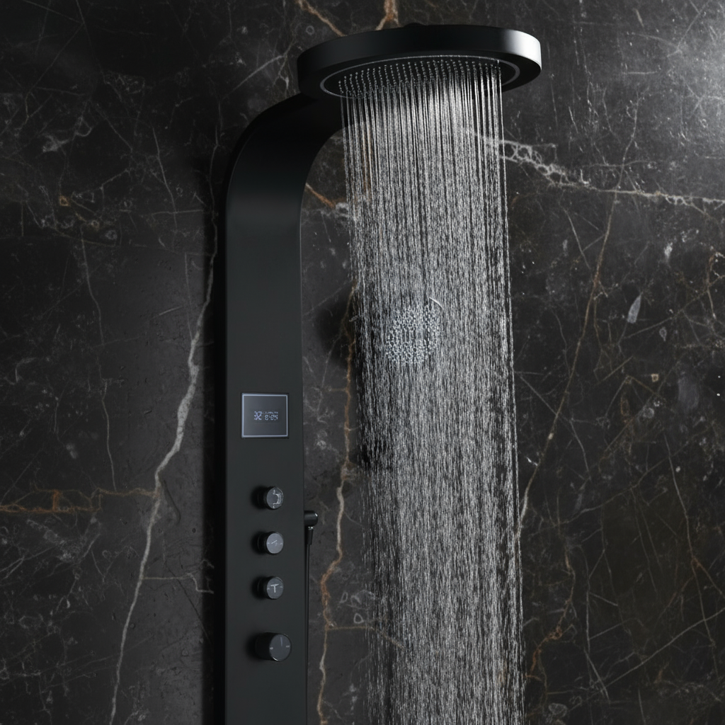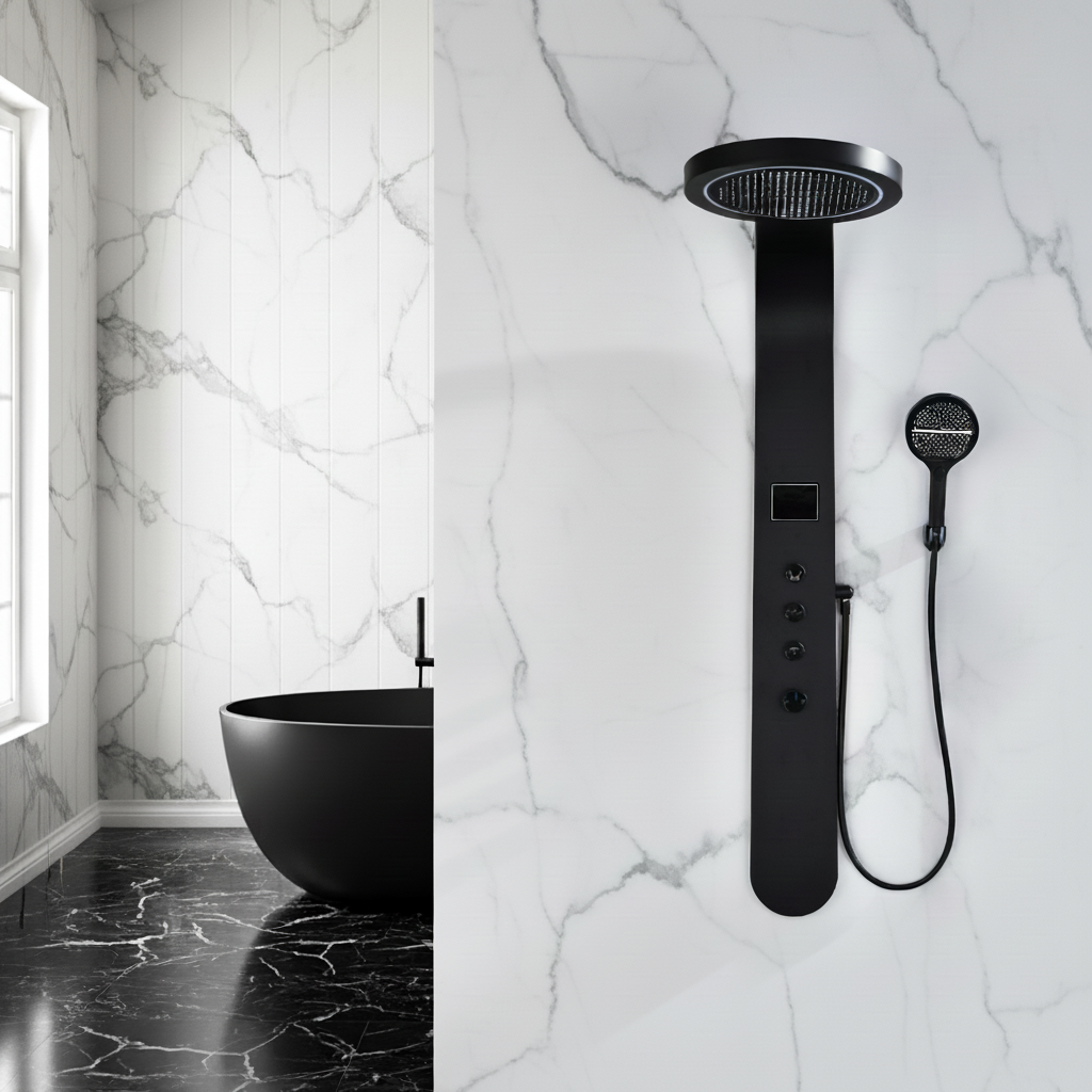 Douchepaneel Elena - LED - Digitaal display - Mat zwart- 145 × 18 × 65 cm