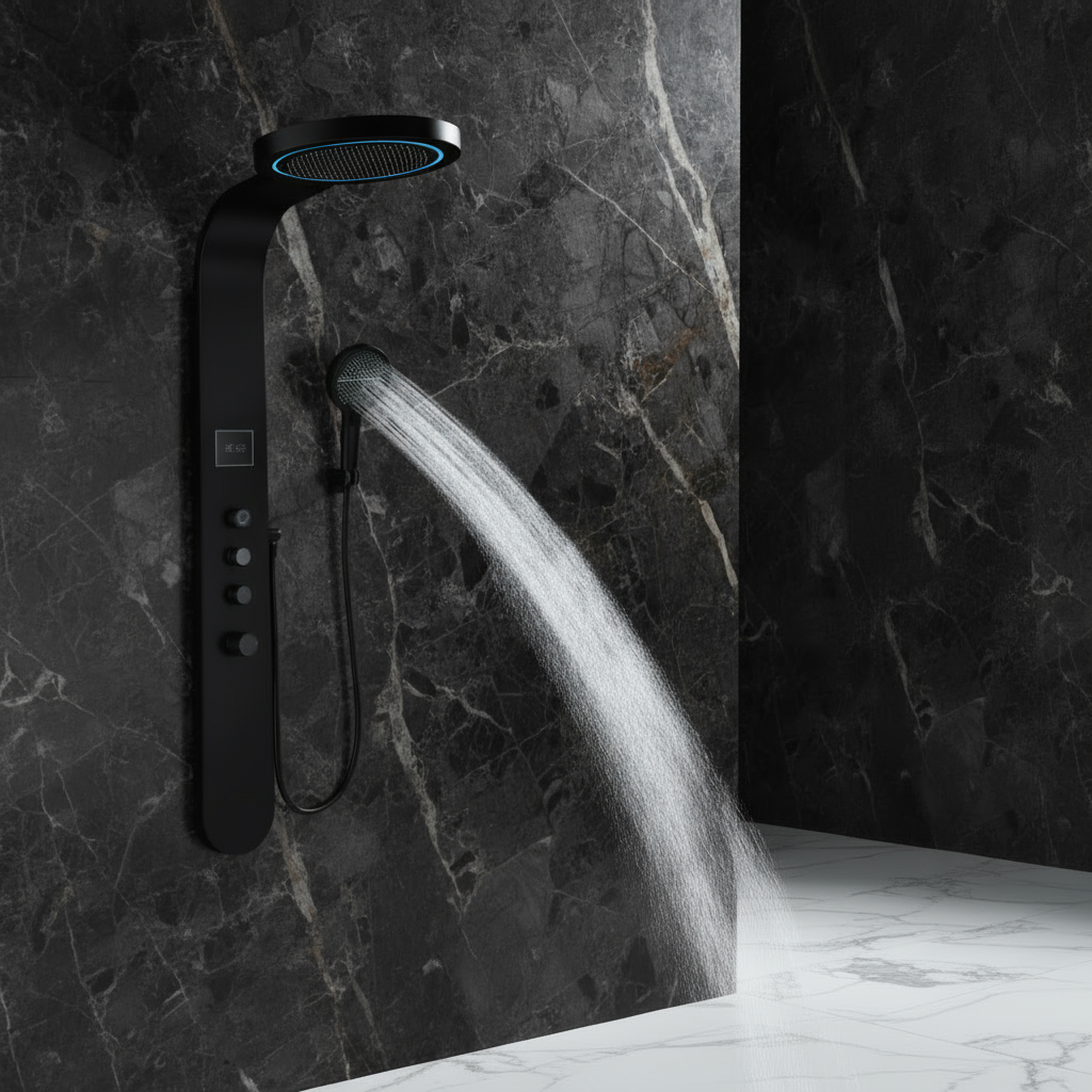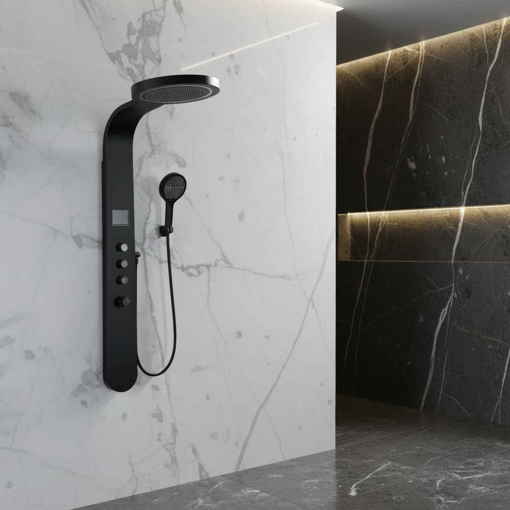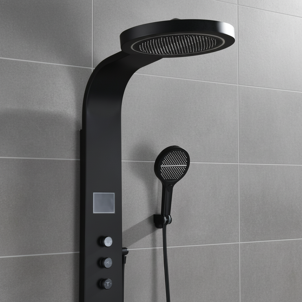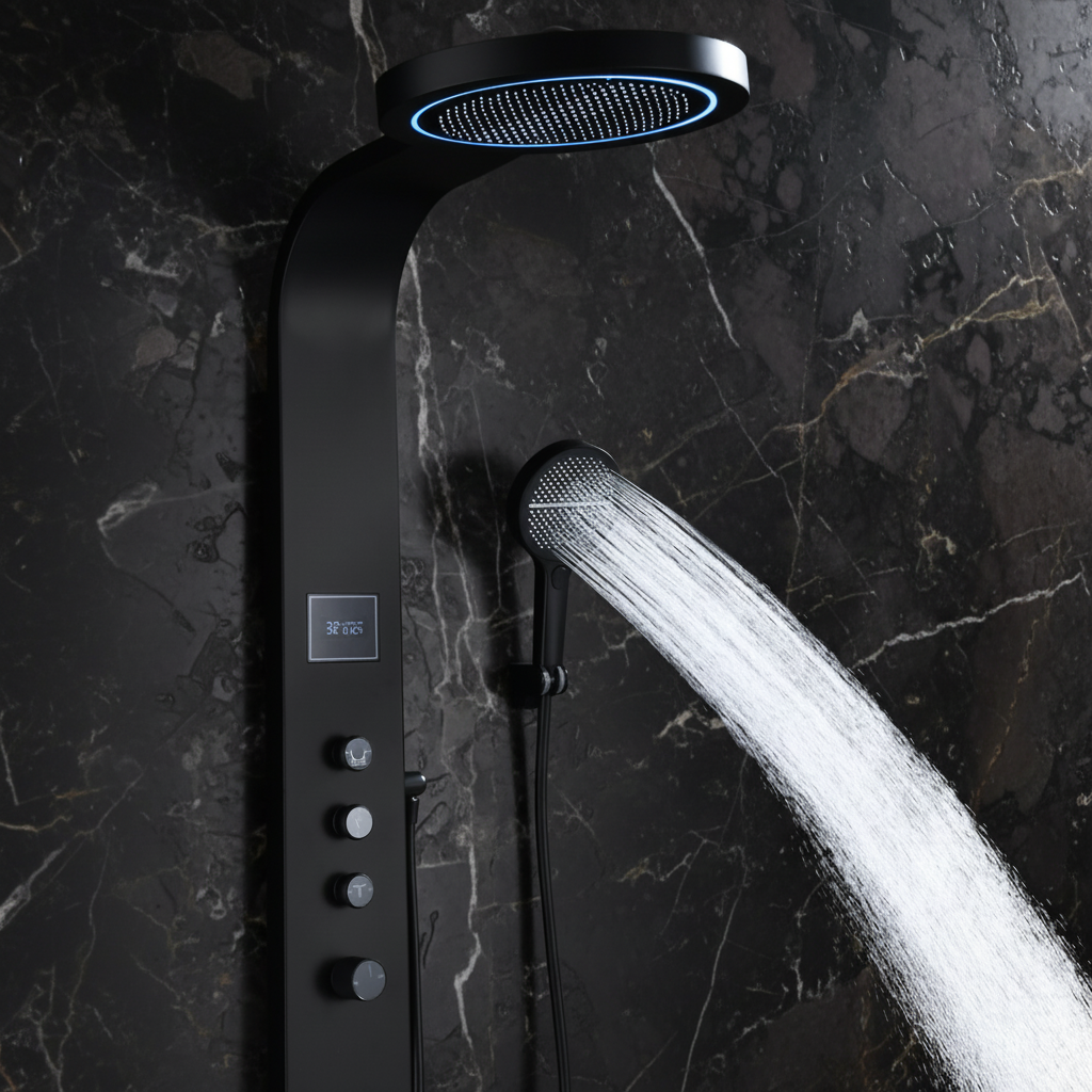 Douchepaneel Elena - LED - Digitaal display - Mat zwart- 145 × 18 × 65 cm