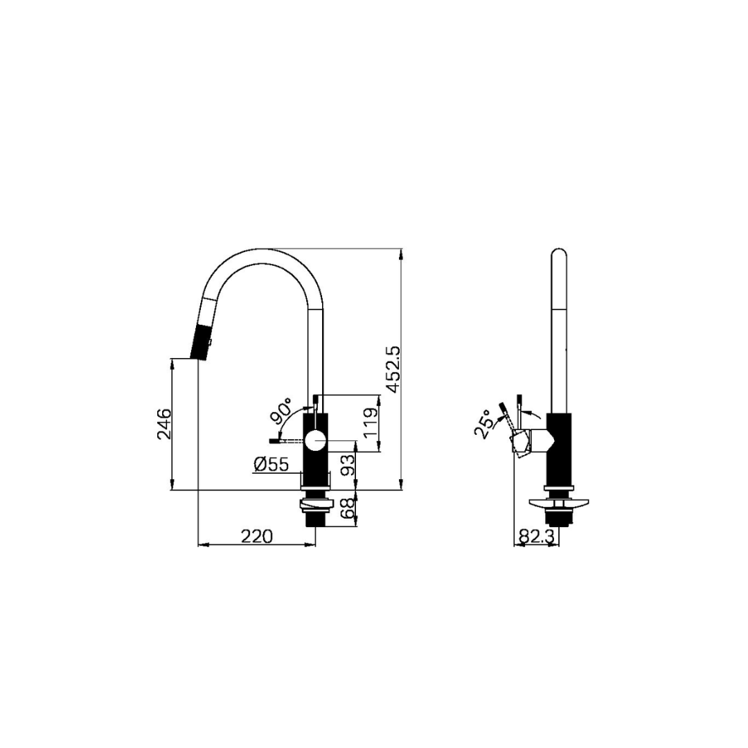 Keukenkraan Valencia – Uittrekbaar met sprayfunctie – Brushed nickel