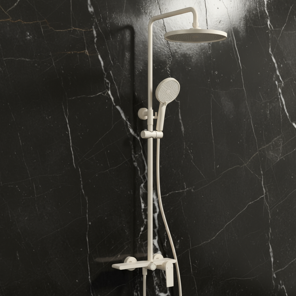 Opbouw regendoucheset Cynthia - Creme wit - 130 × 35 × 25 cm