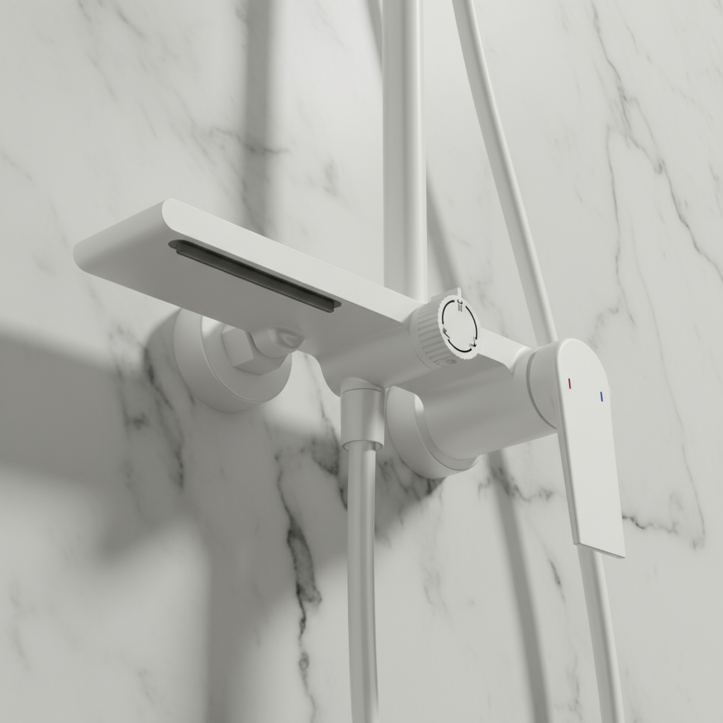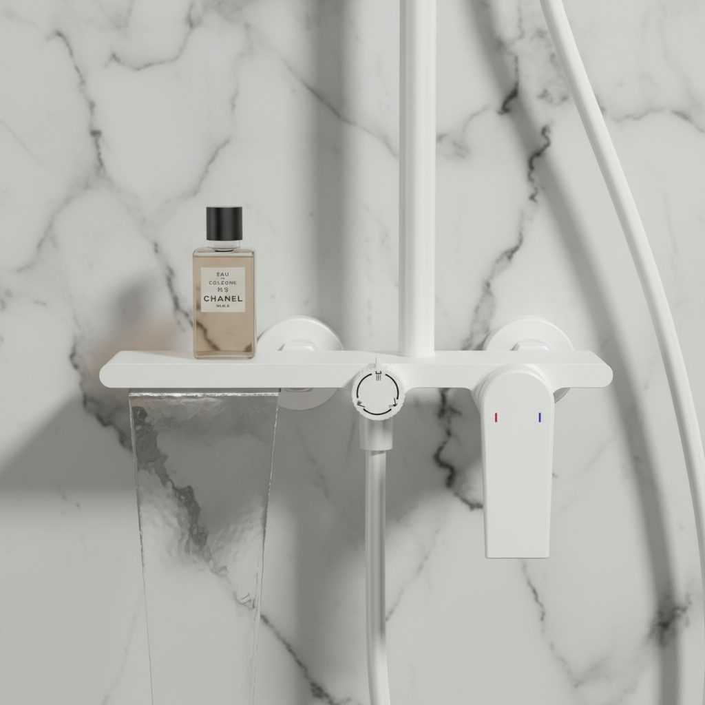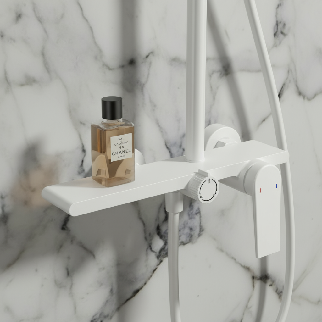 Opbouw regendoucheset Cynthia - Mat wit - 130 × 35 × 25 cm