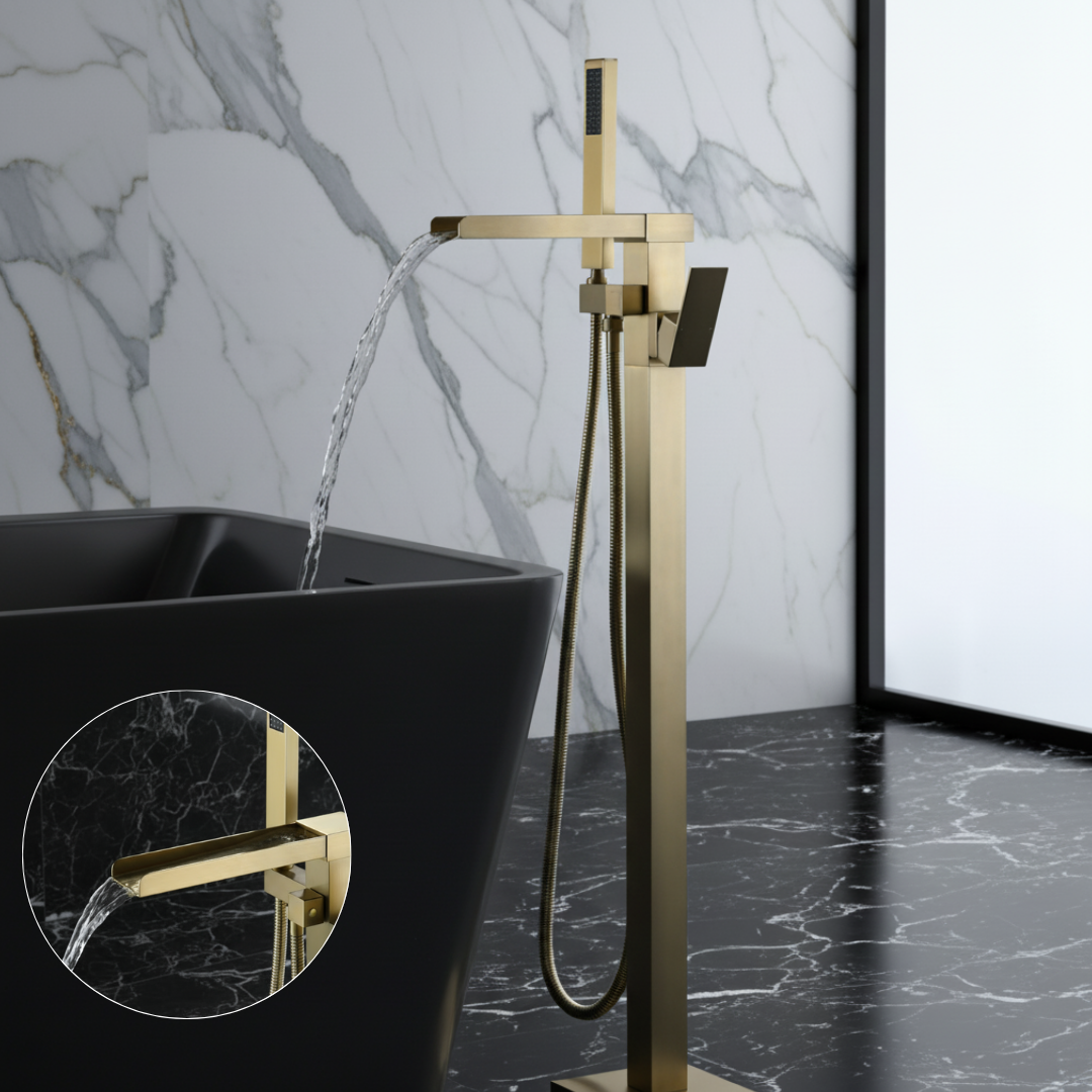 Deze vrijstaande badkraan is geschikt voor zowel vrijstaande baden als back-to-wall baden, mits er voldoende vloerruimte is voor een vloerstaande installatie naast het bad.