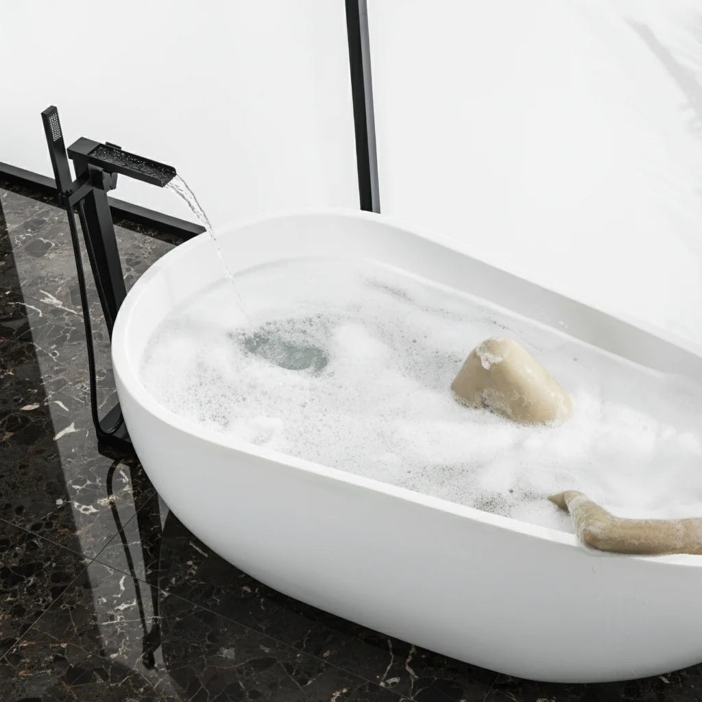 La conception autoportante permet au robinet de s'intégrer proprement à côté de la baignoire, offrant un fonctionnement fluide, un débit d'eau contrôlé et une présence architecturale raffinée sans compromettre la fiabilité.