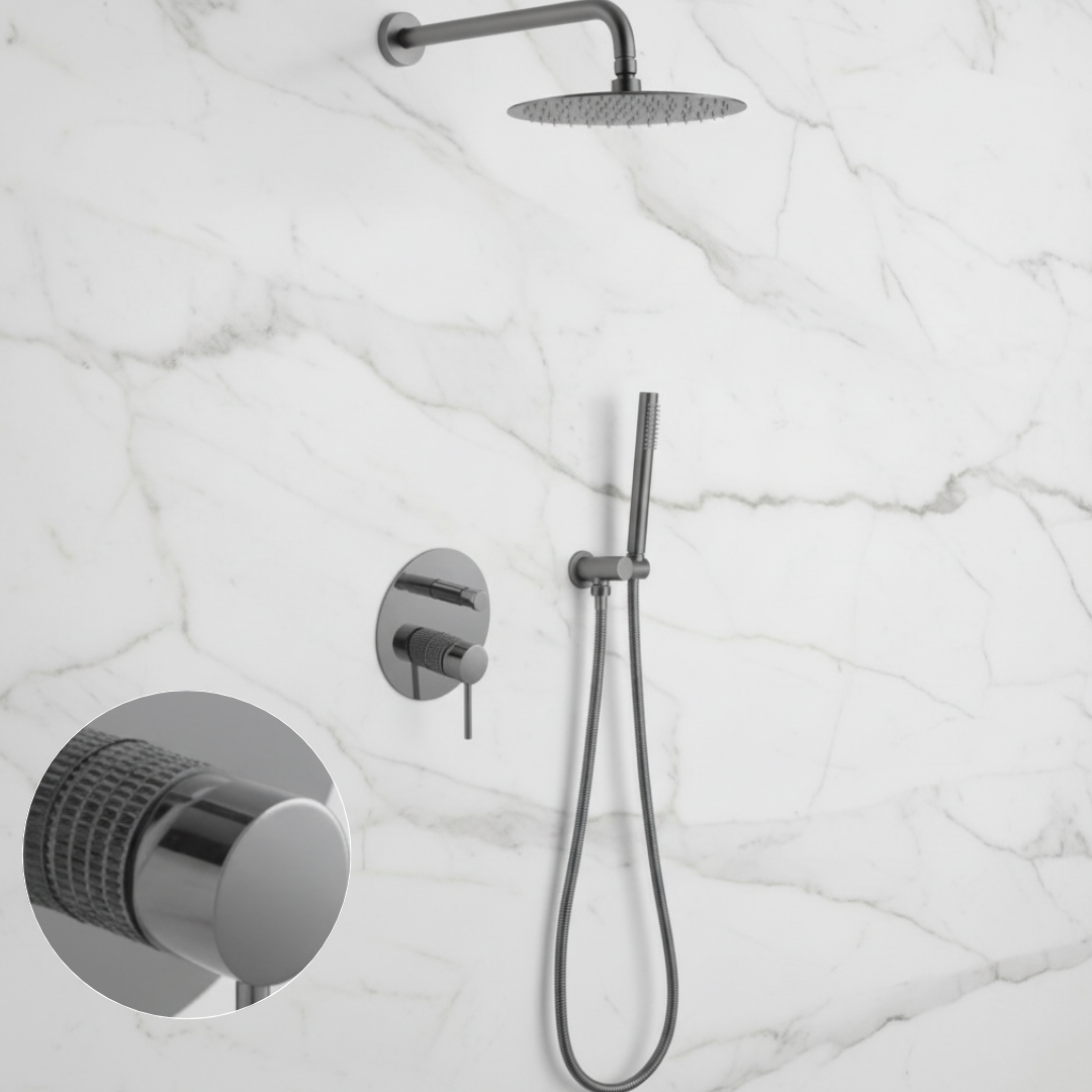 Angelica Inbouw Douchesysteem — Regendouche & Staafhanddouche — Gunmetal Grey