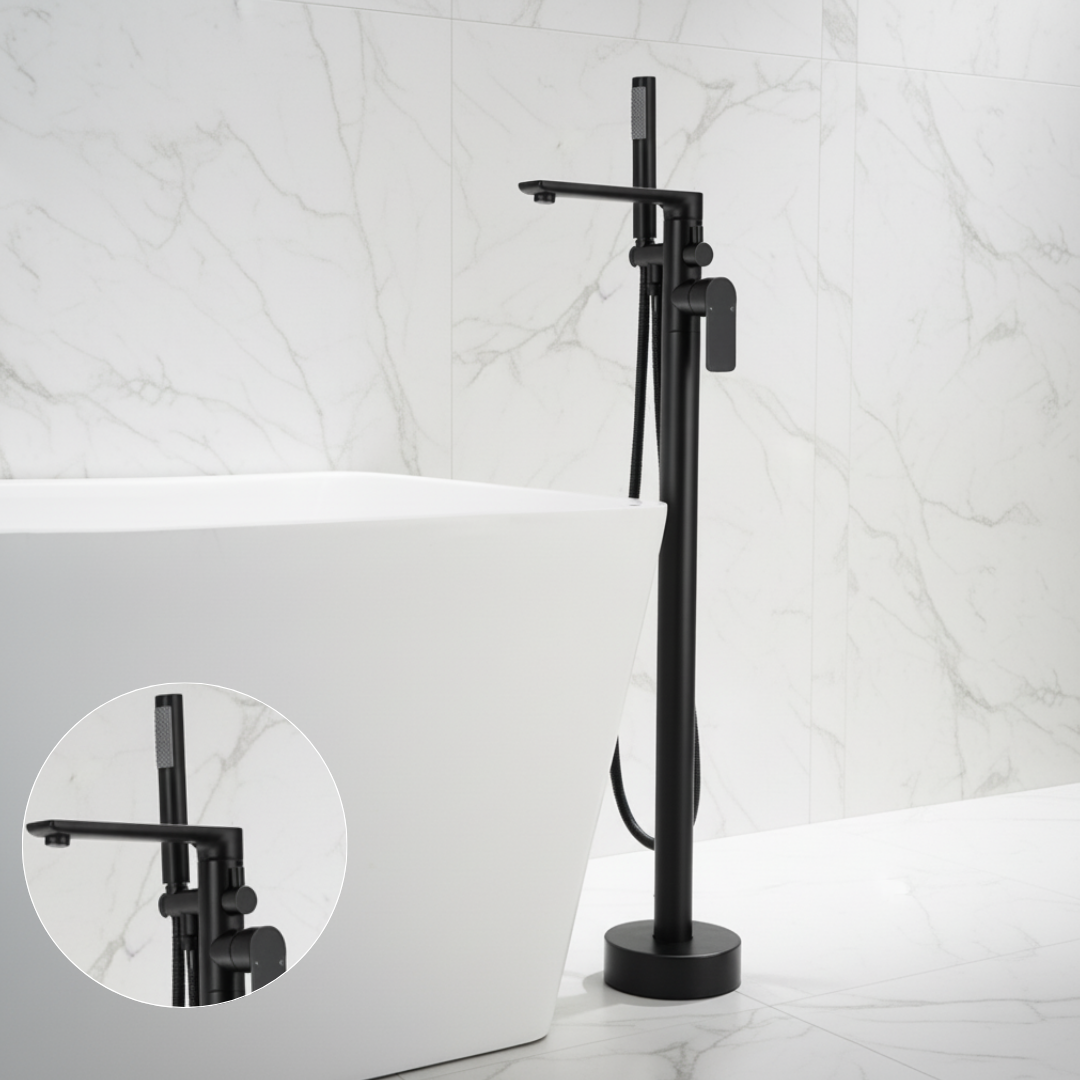 Deze vrijstaande badkraan is geschikt voor zowel vrijstaande baden als back-to-wall baden, mits er voldoende vloerruimte is voor een vloerstaande installatie naast het bad.
