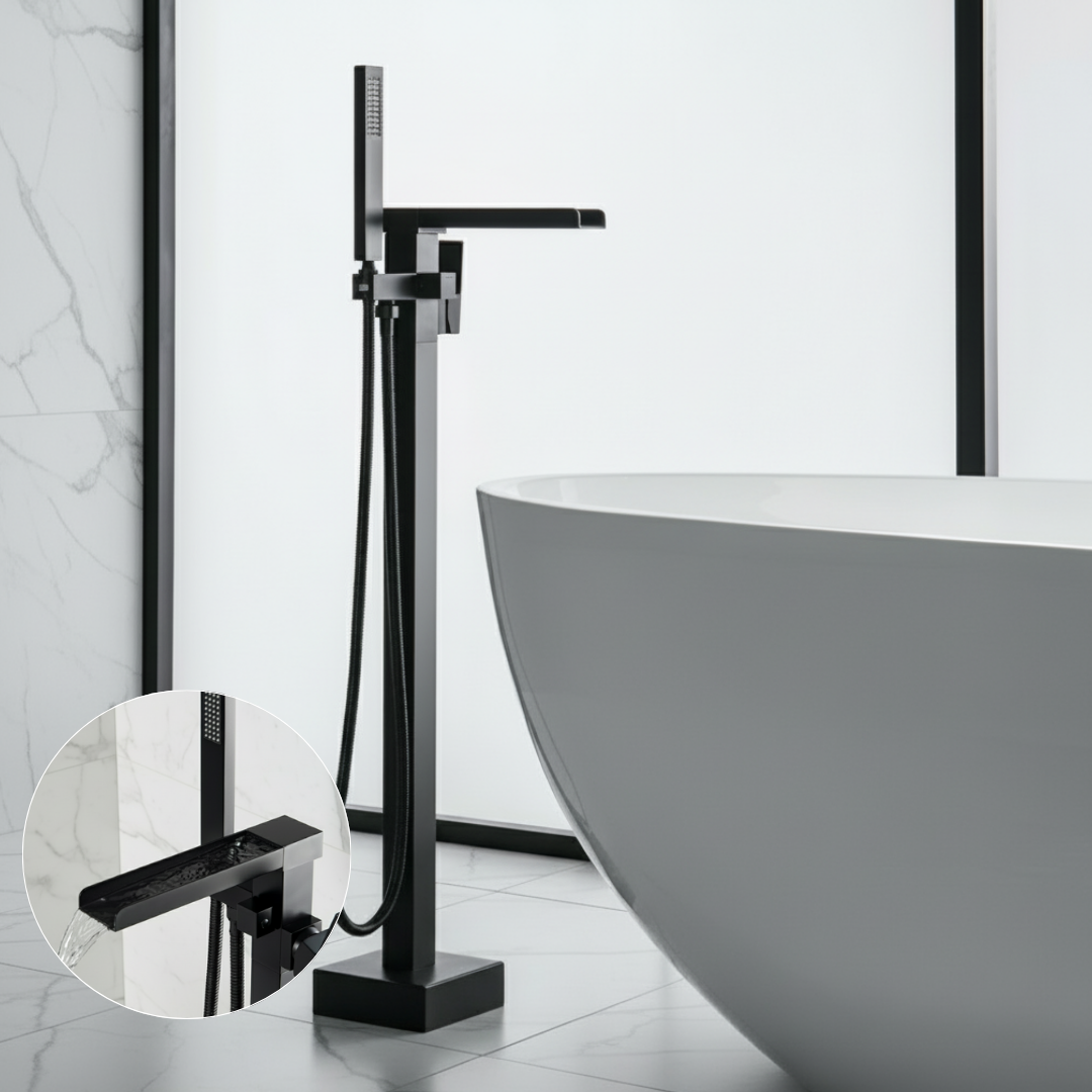 Deze vrijstaande badkraan is geschikt voor zowel vrijstaande baden als back-to-wall baden, mits er voldoende vloerruimte is voor een vloerstaande installatie naast het bad.
